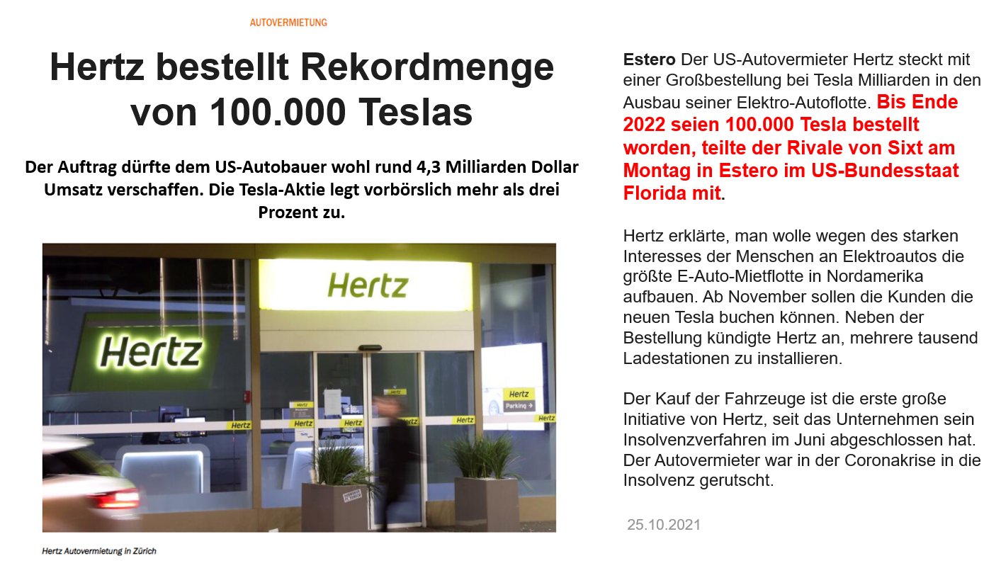 Für Vermieter ist das Leasing- und Unfallersatzgeschäft neben dem Kerngeschäft ein wichtiges Segment. Hertz bestellt 100000 Elektroautos Tesla-Aktie schießt in. Das Unternehmen ist pleite.